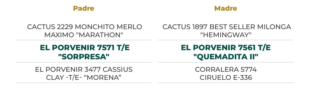 Gran calidad para este joven proyecto con mucha clase y excelente estructura. Procede de una línea materna sobresaliente, con la 5774 “Quemadita” como madre, sinónimo de balance, clase y ancho posterior. Su padre, “Sorpresa”, combina cualidades excepcionales: fenotipo superior, DEPs de élite y solvencia genética garantizada.