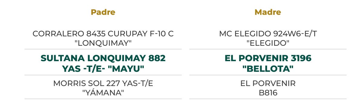 Una hembra imperdible para quienes buscan clase, balance y acebuzamiento. Hija de “Bellota” reconocida por su notable largo y línea inferior perfecta, y de “Mayú” que imprime precocidad y una calidad racial insuperable. Un combo genético diseñado para ver resultados y proyectar un futuro de éxito.