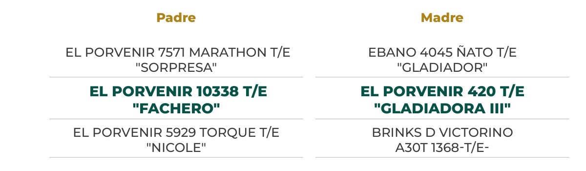 ¡Una hembra que resalta por su extraordinario largo y un pedigree de campeones! Su madre  “Gladiadora III”, una donante sobresaliente que imprime clase, femineidad y una línea inferior impecable, hermana entera de “Gladiadora II” fundadoras de la primera familia de donantes del Porvenir.