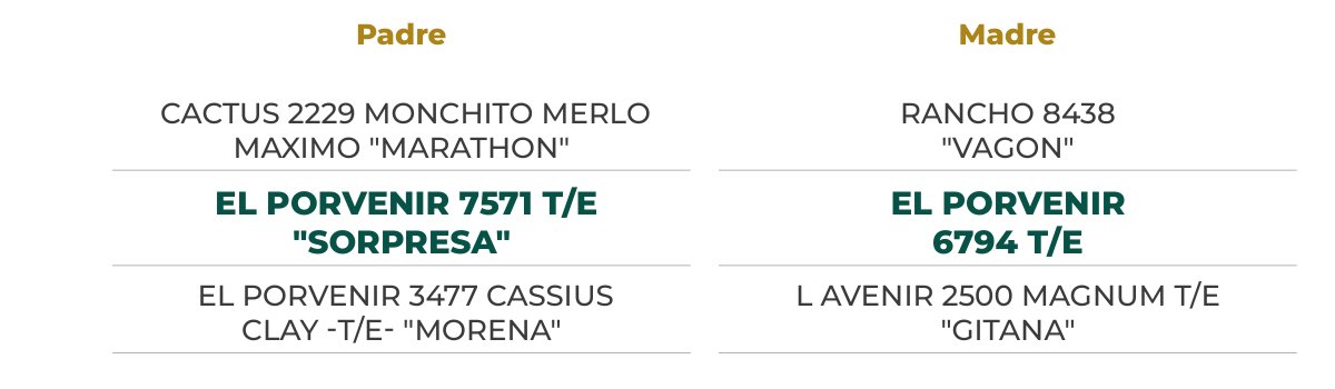 Una hembra prolija y balanceada que cuenta con el respaldo de “Gitana”, nuestra Gran Campeona Hembra de Palermo y Miss World Brangus 2014. A esto se le suma la influencia de “Sorpresa”, que le imprime precocidad, un ancho excepcional y estructura.